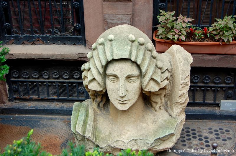 The remnant is the huge, decapitated head of a Greco-Roman goddess, which likely laid at the front of the Ziegfeld Theater. But just how did it get to the yard of a random home? According to the New York Times, theatrical producer Jerry Hammer, who once owned the brownstone, was driving past the Ziegfeld Theater in the 1960s with developer Zachary Fisher, who said he was going to tear it down. Hammer (jokingly, supposedly) asked if he could have one of the theater’s grand limestone heads. A few months later, he heard a crane lowering the head down into his yard. When he moved out in 1998, Hammer left the head behind