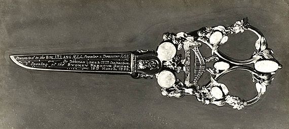 The ribbon cutting ceremony for the Bayonne Bridge on November 14, 1931 was attended by delegates from the Sydney Harbour Bridge Commission. They brought a custom-made gold scissor, made by an Estonian named Vambola Veinberg, which was used for the ribbon cutting. Four months later, at the ribbon cutting for the Sydney Harbour Bridge, the same scissors were used again. According to the Port Authority, “following the ceremony, the scissors were taken apart and each bridge authority carried away a golden blade.”