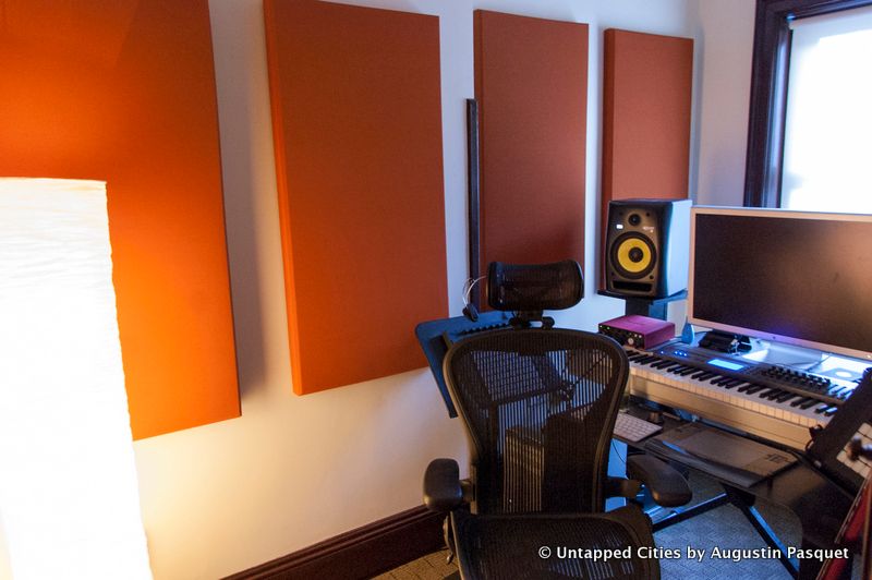 AIHS Director Christopher Cahill jokes that whereas the house was built originally to house five Irish servant girls, “eventually the Irish took over the whole building.” The Society aims to make its headquarters at 991 Fifth Avenue feel alive – and one of those initiatives is through an artist-in-residence, composer Ricardo Romaneiro. The five rooms of the attic servants quarters have been converted into recording studios and office, accessed by an almost Alice in Wonderland staircase. Romaneiro has partnered with the AIHS on programming, including the upcoming collaboration with Metropolis Ensemble and its Brownstone series on Monday with chef Jonah Reider, which will be “an experiential treasure hunt of sound, taste, and color…a jewel-lit, multisensory exploration of interlinked ‘sound bites.'”
