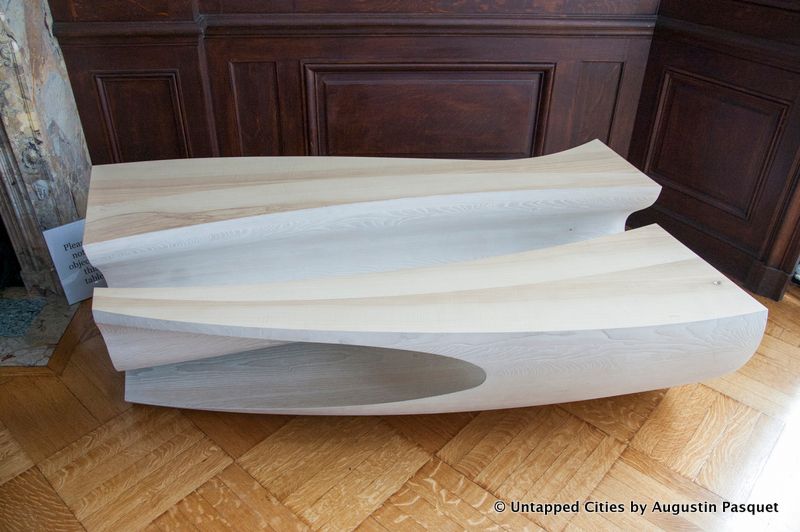 A table by Irish artist Joseph Walsh is located in the main sitting room on the second floor. Cahill tells us that it was one of the first pieces that showed him how “contemporary art works in the space.” Throughout the building, modern pieces juxtapose traditional paintings – reflecting the current programming mission of the AIHS. The event Brownstone 360 on Monday will meld a Grammy-nominated chamber ensemble with experimental music, food, and lighting. Yet, all the modern elements are designed to work with the backdrop of the building itself – for example, the lighting projection works by Christian Hannon with the crown moulding of the rooms and uses it as a three-dimensional canvas. Cahill describes the multi-sensory events as a way to “go further” than simply walking into the building