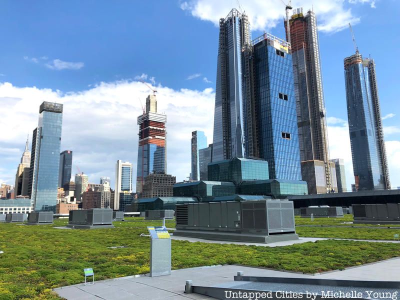 The Javits Center Green Roof covers 6.75 acres and is the second largest of its kind in the United States. It was built as part of a five-year renovation that was completed in 2014. The roof is comprised of eleven different species of sedum, a type of plant that absorbs a lot of water, and has become a thriving habitat for wildlife