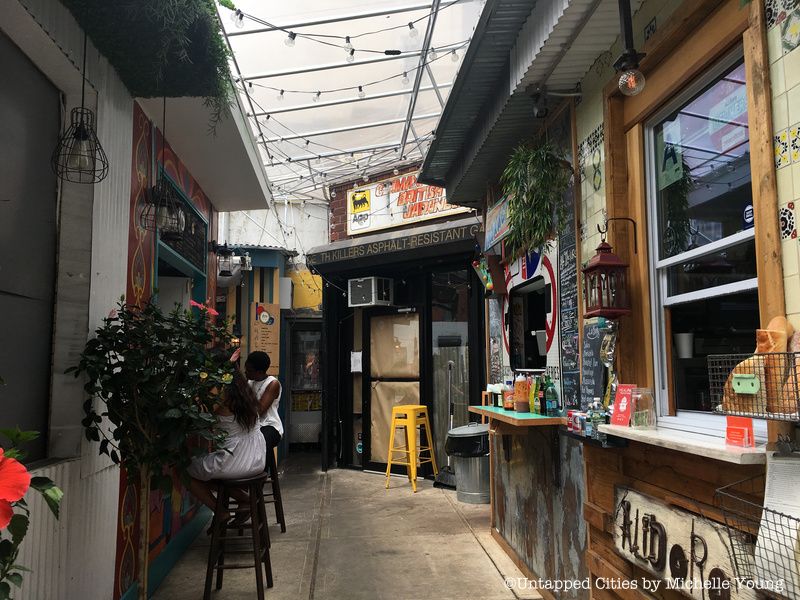 Cuisine aside, the Bowery Food Market is simply delightful because of its quirky location and setup alone. The market is uniquely designed with narrow, cozy passageways, homey ceiling lights, and clear ceilings that allow the sunlight to pour in as you eat or browse your options.