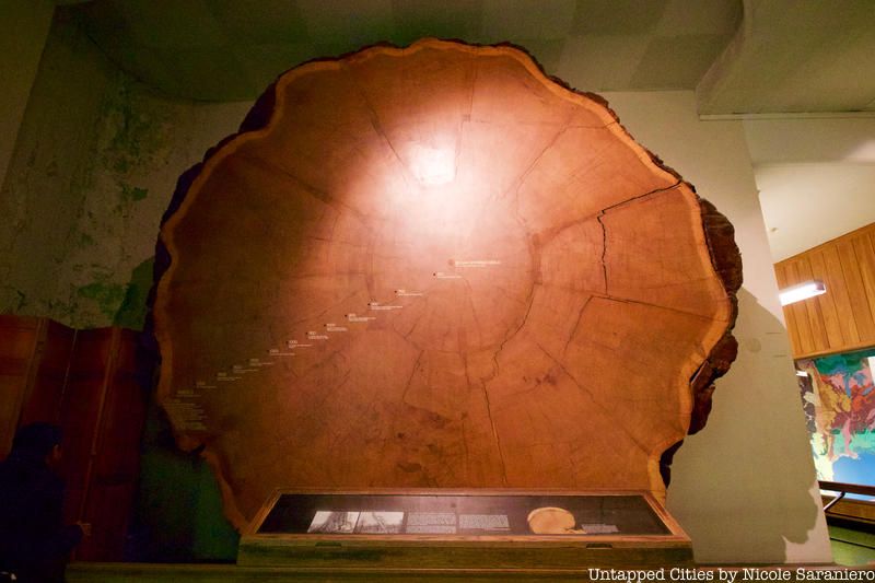 In the Hall of North American Forests in the American Museum of Natural History rests a slice of a 1,400 year old giant sequoia tree. The tree used to stand at more than 300 feet in California, but lumberjacks felled it in 1891. Sequoias have many unique features, including thick, fire-resistant barks, natural wood preservatives and high disease resistance. It is currently illegal to cut one down.