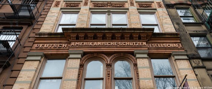 German immigrants made up a large portion of New York City’s population during the 19th and 20th centuries. During this time, there were nearly 250,000 Germans living in the historical Kleindeutschland neighborhood, or “Little Germany.” According to the Lower East Side Preservation Initiative, Germans comprised 30 percent of New York’s population by 1870. Though little remains of the old neighborhood, a sign on 12 St. Marks Place that reads “Einigkeit Macht Stark,” or “Unity provides strength,” serves as a reminder of The German American Shooting Society. The building was built from 1888 to 1889 by architect William C. Frohne for the Deutsche-Amerikanische Schützen Gesellschaft, which was founded in 1857 and was 1,400 members strong by the late 1880s. The society is now known as New York Schuetzen Corps Inc., and its former location is a yoga studio.
