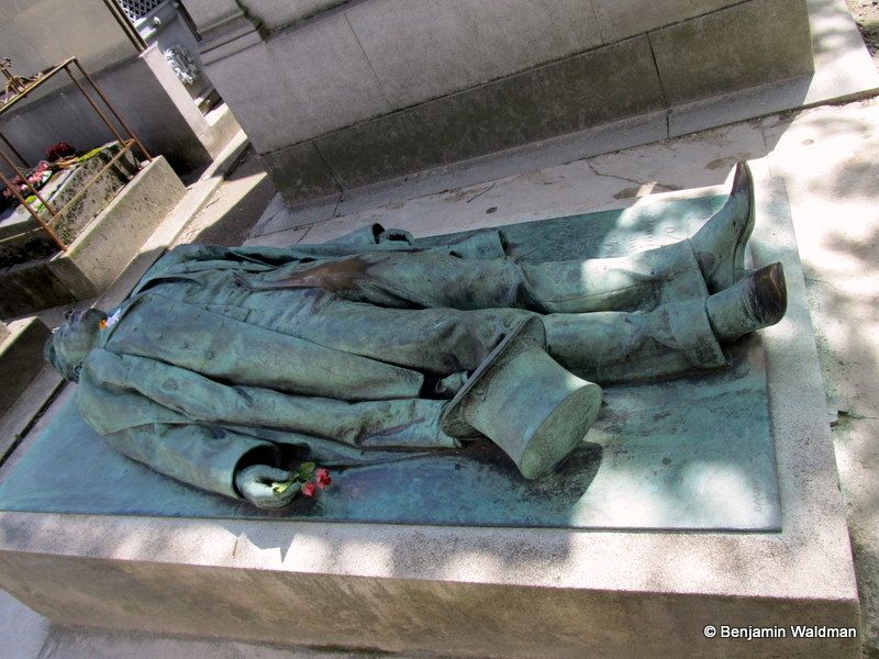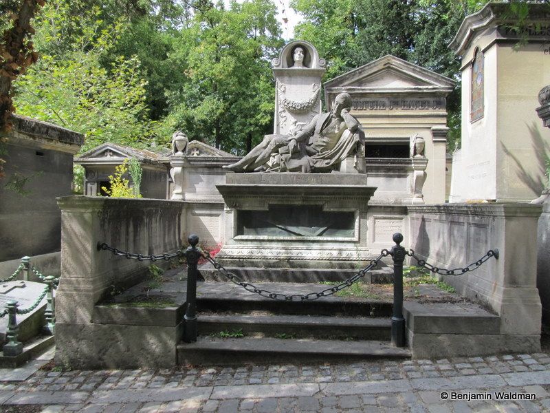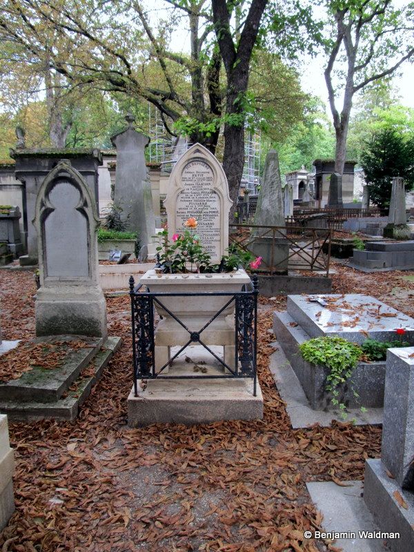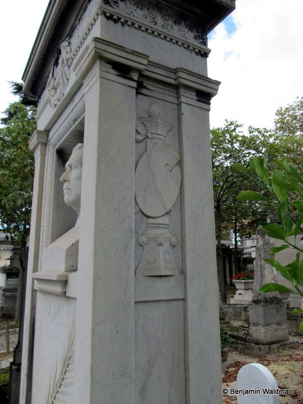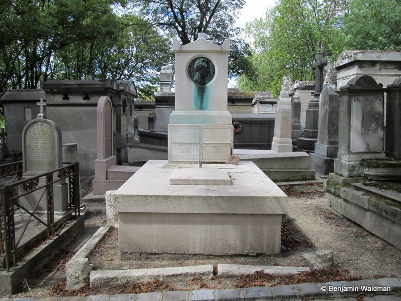 Exploring Paris’s cemeteries–(Montmartre, Montparnasse, Passy, Père Lachaise, and Picpus)–can be a rewarding task. Artists, statesmen, and industrialists abound in these cities of the dead. Additionally, memorials, historical relics, and works of art make such trips all the more fascinating. With enough time, Paris’ cemeteries will reveal their treasures to any visitors. Given that most visitors are on a strict schedule, a cemetery map will save valuable time when conducting a tour of the cemetery’s highlights. However, most maps only point to the general area in which the tomb is located. This leads to aimless wandering and frustration which can be minimized with prior knowledge of a tomb’s design. Therefore, I hope that these articles will serve as a useful tool for visitors to Paris’ cemeteries as well as a guide to those interested in learning more about some of the most famous and interesting sites in Paris.