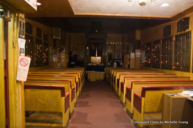 The garment district was once populated by numerous Jewish-owned factories making hats and other millinery goods, and this synagogue was founded so workers could attend services in the neighborhood. Globalization moved a lot of garment production overseas, and what you’ll see on the internet is that this place is supposedly closed, but it’s been busy since I noticed it over a year ago. Out front, they sell bed linens as a benefit for the populations in need that come to the synagogue. Inside, 4-5 services are held per day. First and foremost, they’re trying to rebuild the Jewish community in this neighborhood, and they were very welcoming of my visit and my questions.