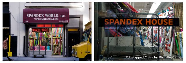 Just in case you were short on Spandex, along 38th Street are both Spandex House and Spandex World, both filled with all the Spandex one could desire. There are many extremely specialized shops in the Garment District, like Capitol Fishing Tackle on 36th Street, which was originally a cutlery firm from Germany in 1845 that moved to New York in 1897. The neon sign is from 1941 and has been recently restored, despite several relocations of the shop. Across the street is the oversized zipper and button sign from LA MCOM Complete Vertical Trim Manufacturer. Shindo is a good choice for ribbons.