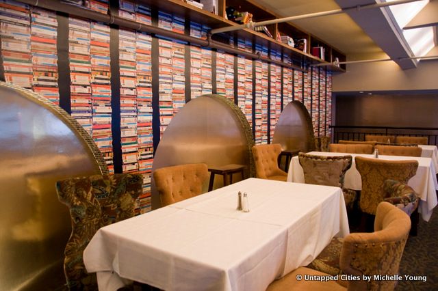 We got drawn in here by the fun bookshelf wallpaper on the balcony level of Arno Restaurant (141 W. 38th Street), and then discovered that the restaurant hosts a 3-course murder mystery dinner theater called Murdered by the Mob. We haven’t tried it yet, but it’s on our list.