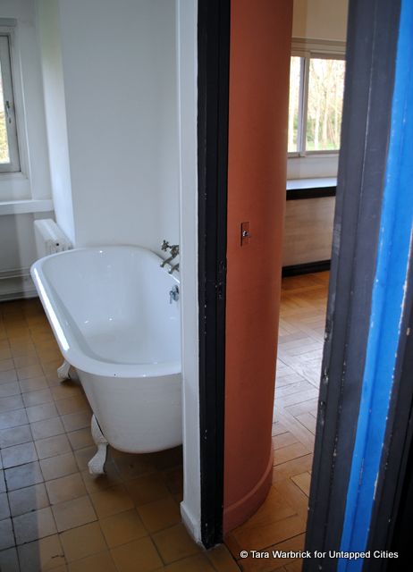 The ticketing desk and gift shop are crammed into the ground floor Entrance Hall, but once this patch of clutter (that would have Le Corbusier turning in his grave) is navigated, visitors encounter the built-in table and wash hand basin — the architect’s dictation to client and visitors to the villa of the correct process and rituals of entrance.
