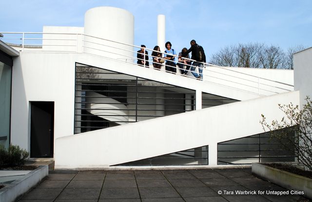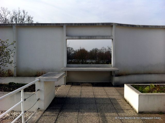 We’d been looking forward to visiting the Villa Savoye since moving to Paris. It’s one of the most acclaimed buildings designed by the Swiss-born master of modernism: Charles-Édouard Jeanneret, aka Le Corbusier. The Villa is located in Poissy, a suburb that lies a good 40 minutes by RER train west from the centre of Paris. “Archi-tourists” share the number 50 bus from the station with locals, who seem used to seeing people toting large cameras and stylish satchels. The site approach is somewhat drab, as the bus trundles past a bleak combination of suburban malls, houses and a small prison.