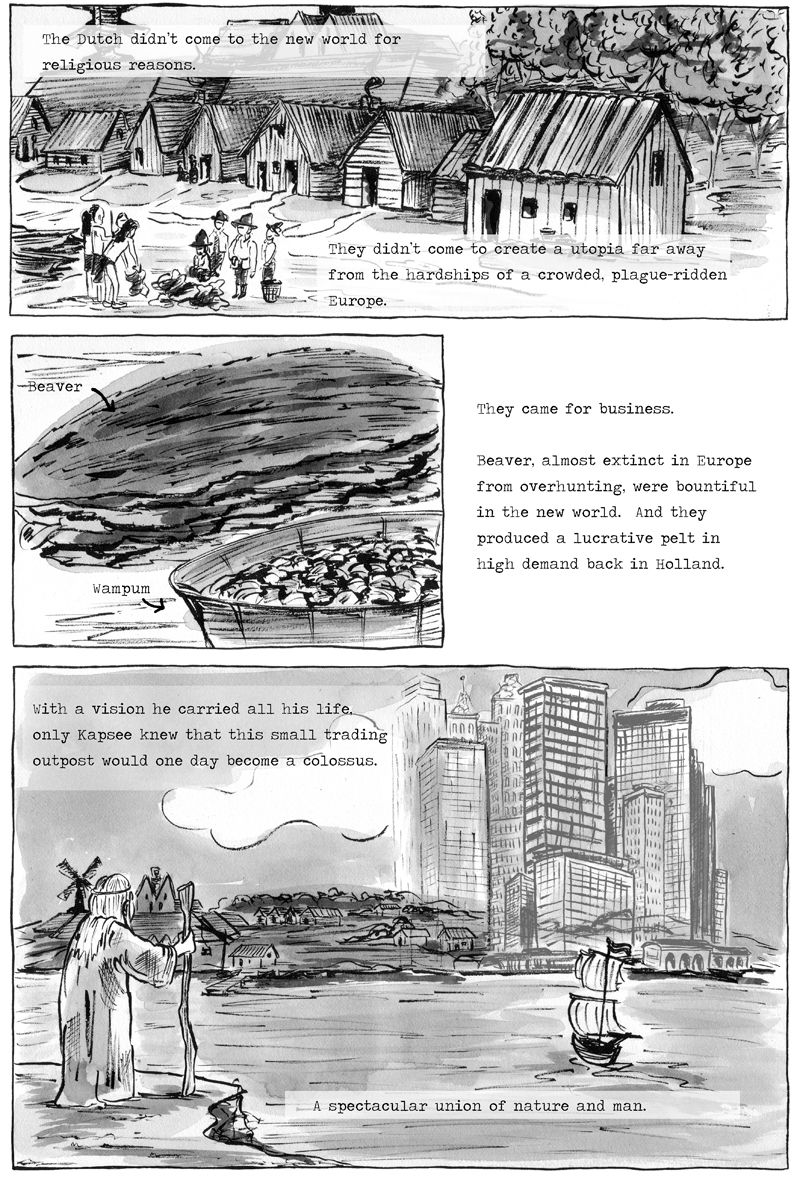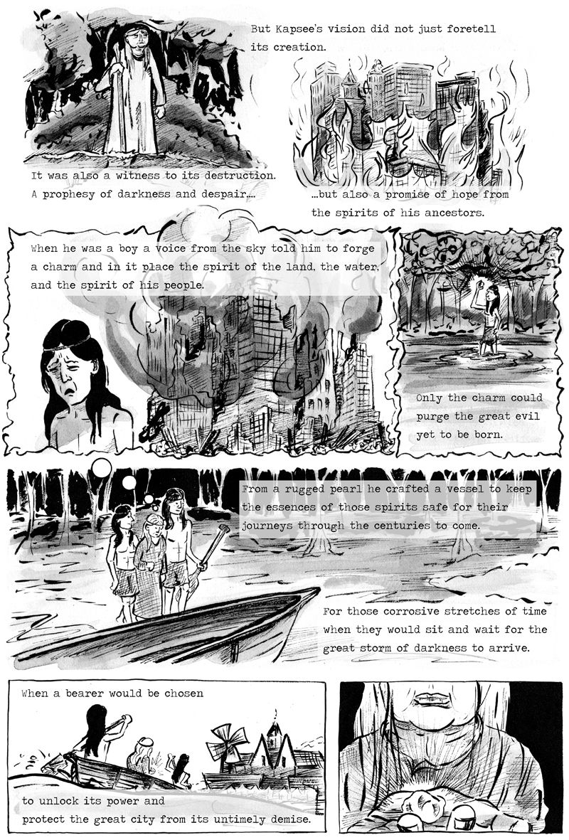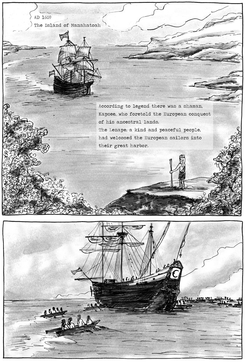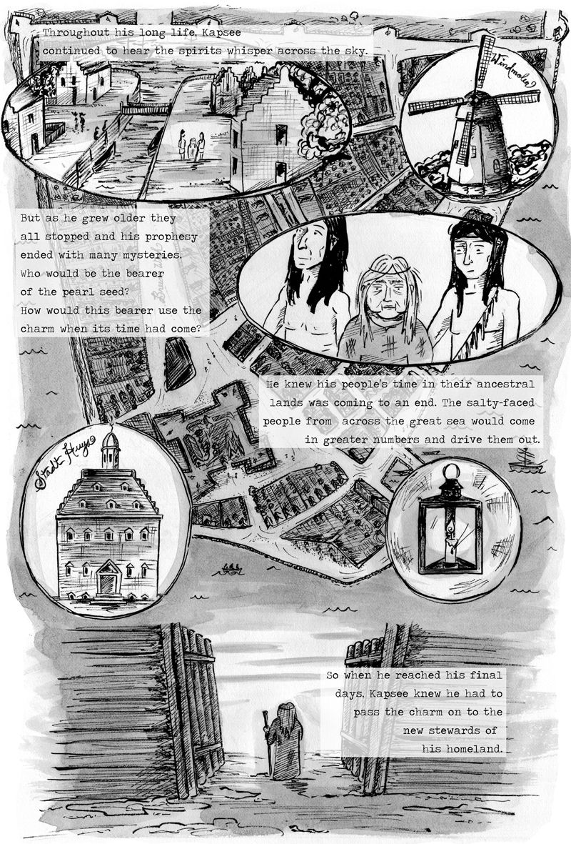 In this week’s installment of The Wonder City, Owen starts digging into The Tovernboak, or the ancient Dutch document that explains the prophecy of the Parelzaad charm that was lost around Lizzie’s neck. It all begins with a Lenape shaman named Kapsee who received a vision of a great future city built on his ancestral lands. He also foresaw its complete destruction and how to prevent it. Before the end of his life, he wanted to pass the knowledge off to the new stewards of his homeland… the Dutch.