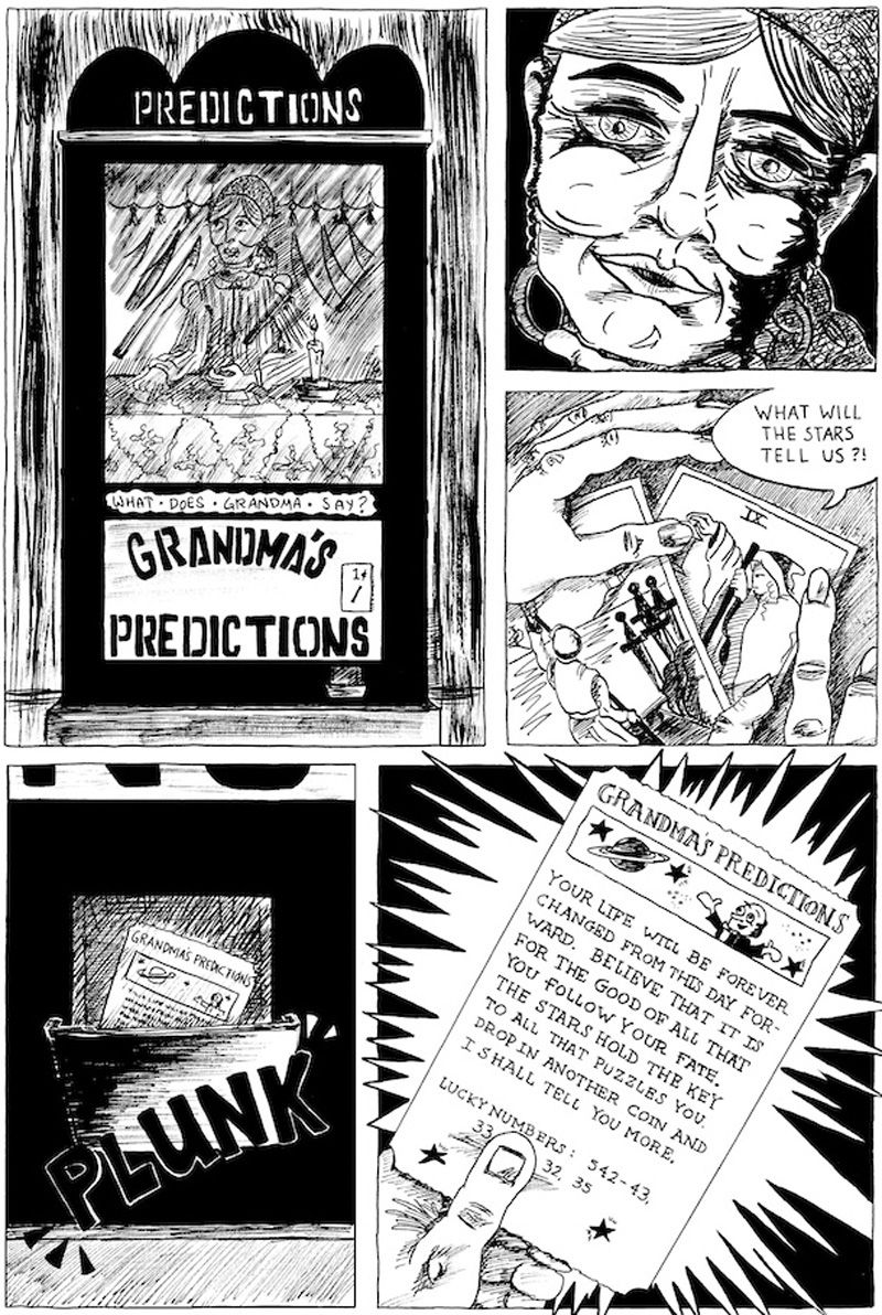 Grandma’s Predictions is real and can still be found under the Wonder Wheel on Coney Island today. She was placed there when the Wonder Wheel opened in 192o and has been telling fortunes every since. Her only vacation in 97 years was for a restoration after Hurricane Sandy flooding damaged her in 2012.