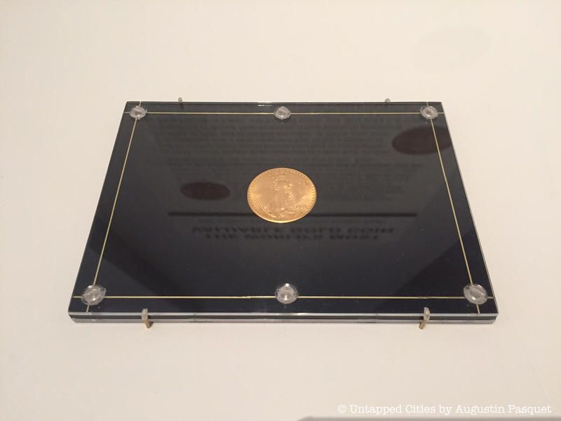 As the display in the New-York Historical Society notes, the Double Eagle in the collection is “one of the most famous and storied coins in the world.” At the commission of Theodore Roosevelt, the coin was designed by renown sculptor Augustus Saint-Gaudens, who also designed the interior of the Cornelius Vanderbilt II mansion. It shows Liberty, in the form of a woman, in front of the Capital building in Washington D.C. on one side, and an eagle flying on the other. The coin does not have two eagles, as the name might indicate, but rather, the “double” references the fact that it was worth two times the $10 coin when minted.