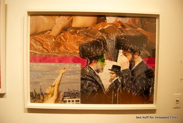 The photography-based work is made up of pictures of Hasidic Jews superimposed with naked women, bright colors, cars, empty rooms and other themes. In effect, there is a collisions of worlds. The scantily clad women and Hasidic Jewish men in their traditional clothes make an obvious juxtaposition. The large empty rooms, skyline shots, and large windows make the images seem like aspects of that perfect North Brooklyn apartment that space hungry New Yorkers crave, and the superimposed Hasidic men are the poignant reminders of the steps necessary to attain that dream.