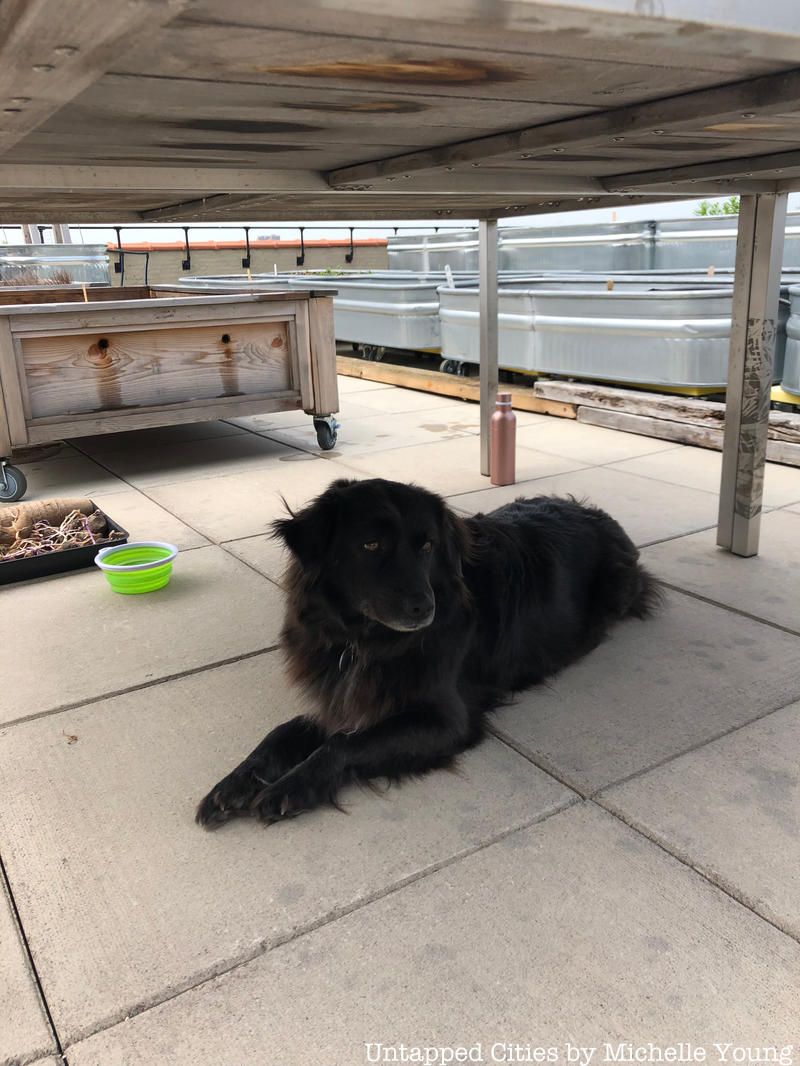 Rudy, Denise’s dog, has found the shady spot on the roof