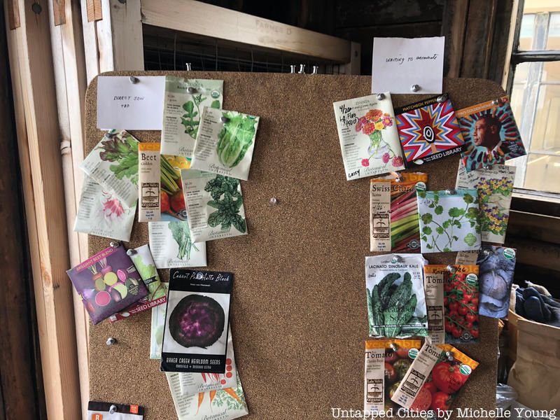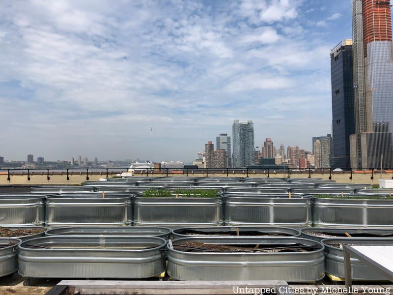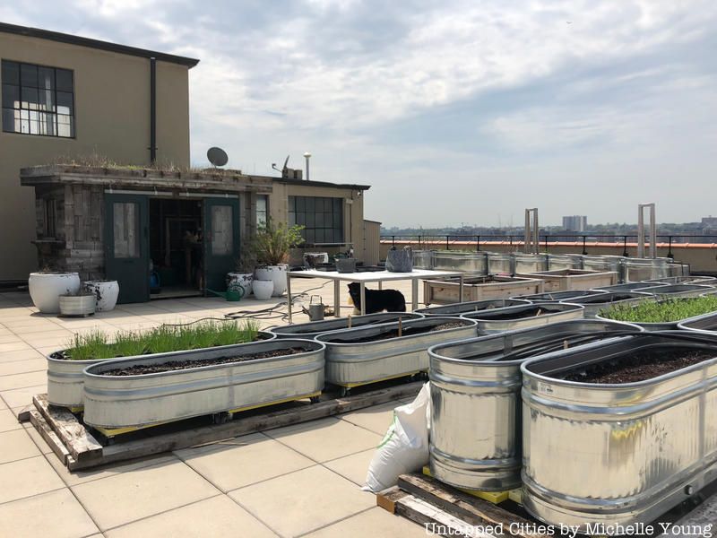 There’s a secret garden on a roof of the Starrett-Lehigh Building in Chelsea, a farm run by volunteers who are all employees of the many companies in the building. Last week, an enticing message started showing in the building’s elevators announcing that the rooftop garden was open for volunteers. As members of the Centre for Social Innovation, a mission-driven co-working office and event space inside the building, the Untapped Cities team headed up to the 8th floor and followed friendly index card signs that said “Garden this way! up 2 flights.”