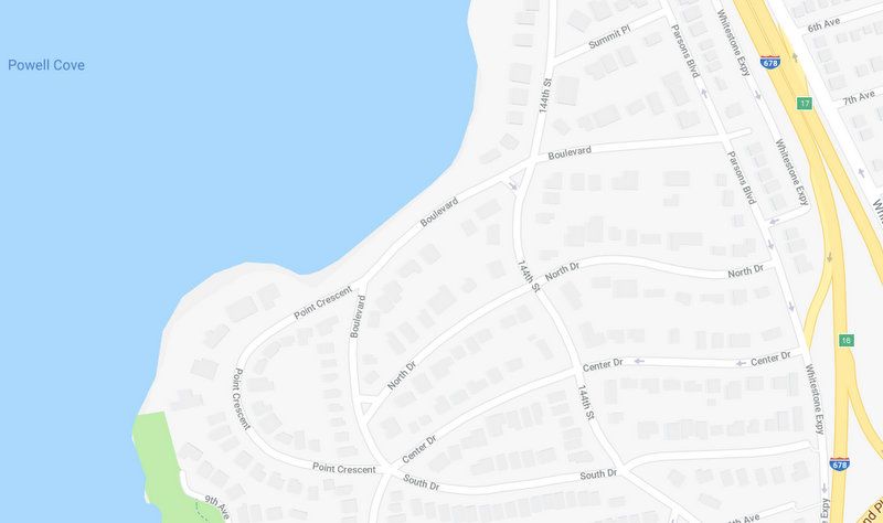 As you’ve read in our History of Streets column, New York City has a lot of unique street names, from honorific streets to astronaut-named streets to functionally named streets. We just came across a new category: streets with no descriptors whatsoever. In the Malba neighborhood within Whitestone, Queens, there is a street simply named “Boulevard.” The street, in a tony residential area next to Powell Cove, also runs along the waterfront. When the GPS directed us there, we thought initially that it might be a glitch in Google Maps. Stopping at the first intersection coming from the east, we realized it indeed is a one word street name.