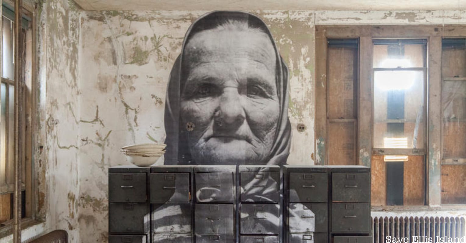 Commemorate the 10th anniversary of JR’s unforgettable “Unframed—Ellis Island” exhibit on a special tour with Save Ellis Island! This unique installation brought the abandoned Ellis Island Immigrant Hospital back to life with larger-than-life archival photographs. JR’s wheat-pasted photographs were not meant to be permanent. Due to the ever-changing environment of the abandoned hospital, not all these captivating works remain. We are fortunate to have access to over a dozen images. Don’t miss this opportunity to view a fading masterpiece!