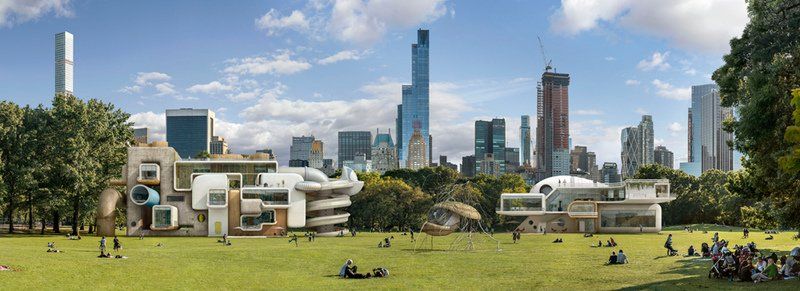 The installations are alien structures, stark, apocalyptic and ostensibly modern amidst the park’s cheery green landscape. The fact that they are described as shelters creates a dichotomy and forces the viewer to ask: what is shelter, really? Is it a city built to elevate human progress to the highest level, always distancing us from the wildness of our animal past, or is it a green space away from the noise of civilization?