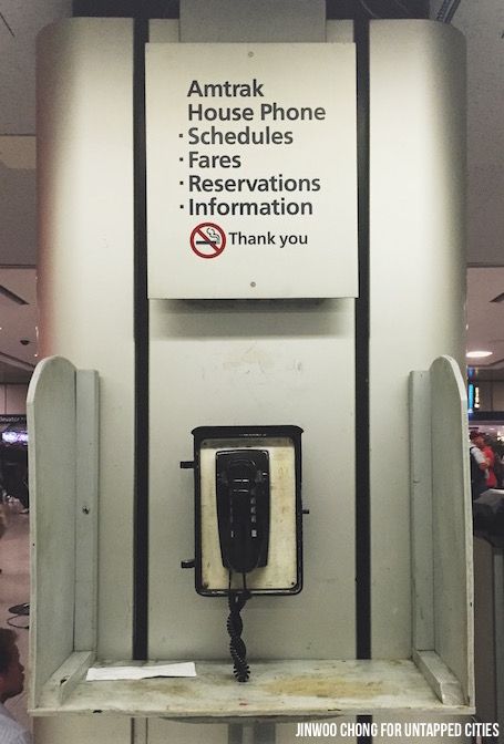 Interestingly enough, though pay phones are nearly nonexistent in the city these days, one does remain in Penn Station’s Amtrak concourse and looks to be decades old. A sign above it reads ‘Amtrak House Phone.’ We were told of its existence by Not For Tourists, and upon exploring the station yesterday, found that it does indeed connect you directly to Amtrak.