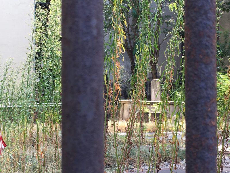 The first Cemetery of Shearith Israel on St. James Place. The area is locked and appears to have been neglected for some time. Photo by Justin Rivers.