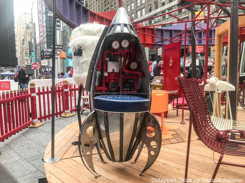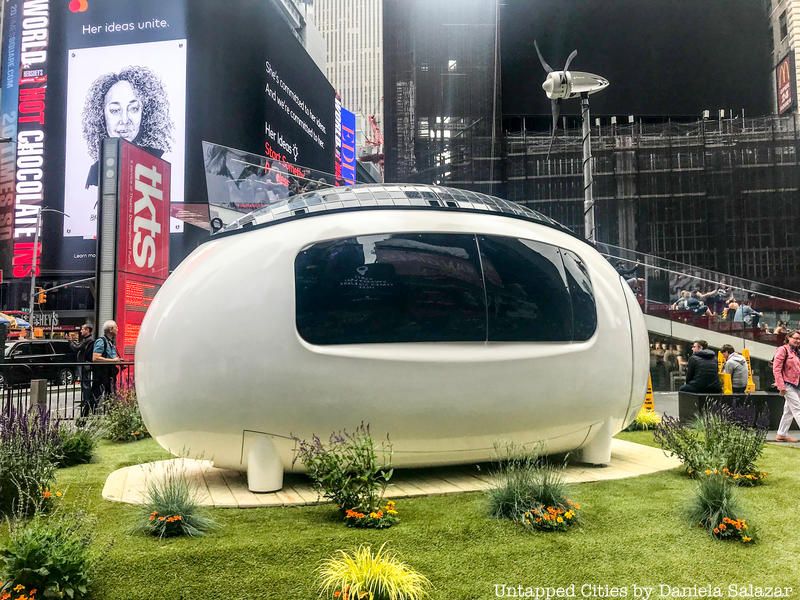 Here’s a reason for New Yorkers to head to Times Square: there are sixteen installations to check out at DESIGN PAVILION, the hub of NYCxDESIGN, the annual city-wide celebration of design. Stretching from 42nd Street to 47th Street across five plazas (kiosks will show maps to aid your journey), there is everything from an “ecocapsule,”, a tiny house, a carousel of creative chairs, to an iconic Eastern European bloc kiosk shown in the United States for the first time.