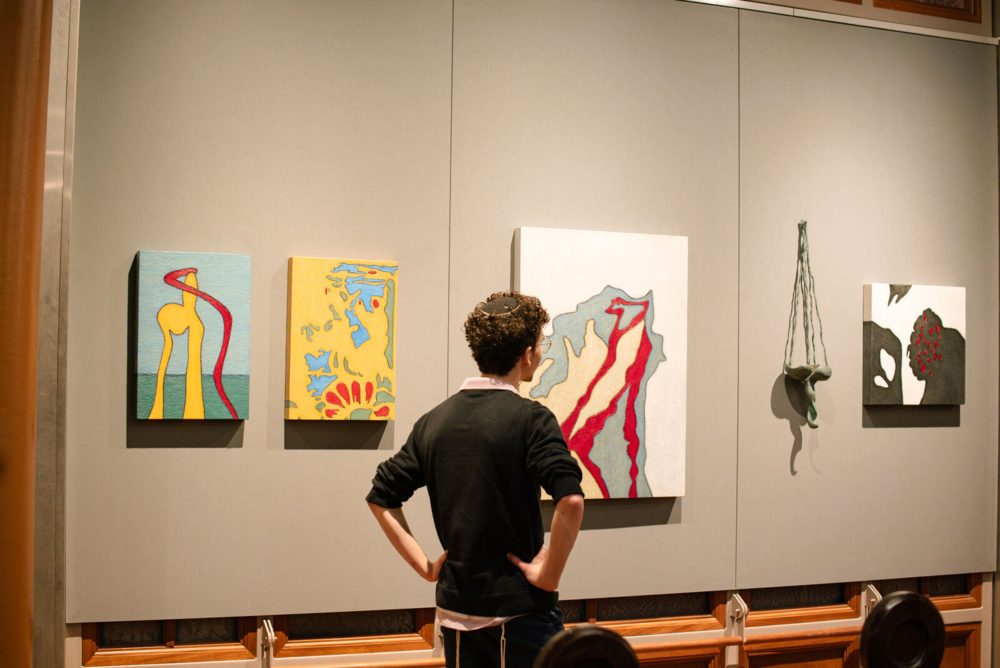 Though this Jewish legacy reverberates through the exhibit, people of all faiths, or none, can relate to the works on view. “As an artist, I believe you are a guide rather than a leader in the artistic conversation,” Kahns says, “My wish is that visitors will look at the show more than once, focusing on different paintings and ceremonial objects.”