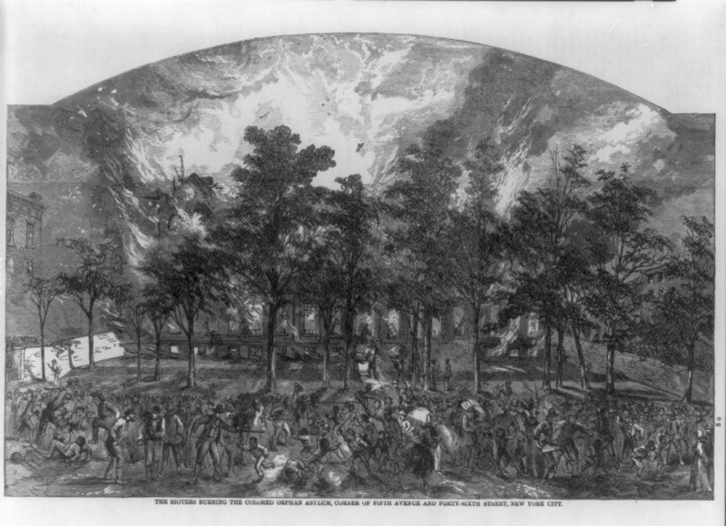 In one of the more disturbingly racist acts of the Draft Riots, white protestors targeted the Quaker-run Colored Orphans Asylum on 5th Avenue, citing their fears of impending job competition from emancipated slaves moving to the North. The orphanage, established in 1836, was the first institution to take black children whose parents had died. News of the riot reached them early, and the children were smuggled through a back door. The building was burned, but was rebuilt in the Bronx four years later. The block is now occupied by a branch of the Parsons School.