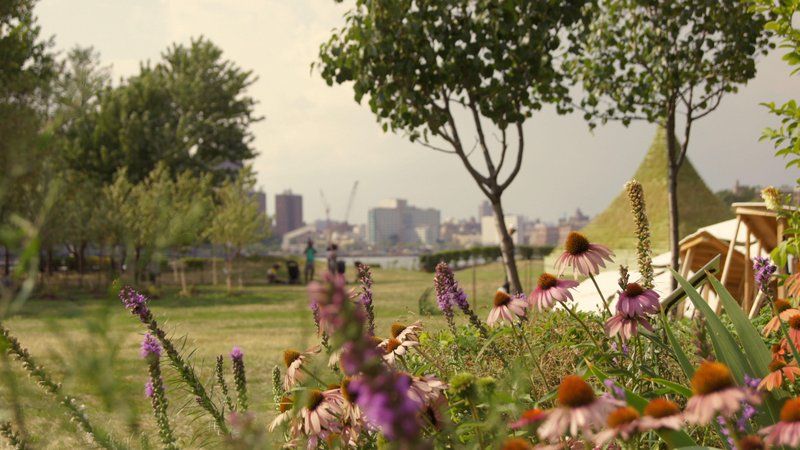 In 2015, New York City-based artist Agnes Denes also presented “Living Pyramid” on Socrates Sculpture Park’s East River waterfront. The site-specific earthwork tied together environmental priorities, social hierarchies and Denes’s own fascination with pyramid structures in a participatory (and evolving) art piece. Its lifecycle started in April 2015, and as the pyramid grew, the public was invited for a planting event on May 17th, coinciding with the park’s spring opening.
