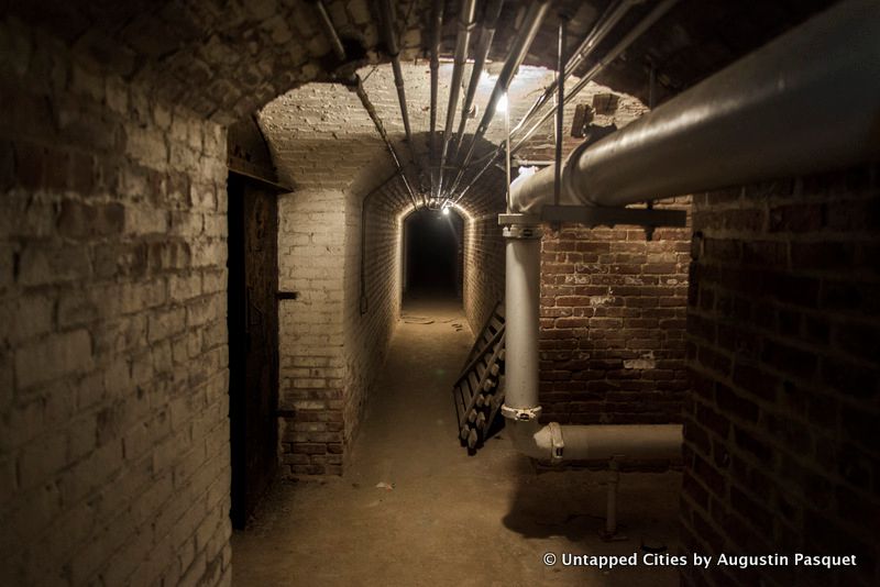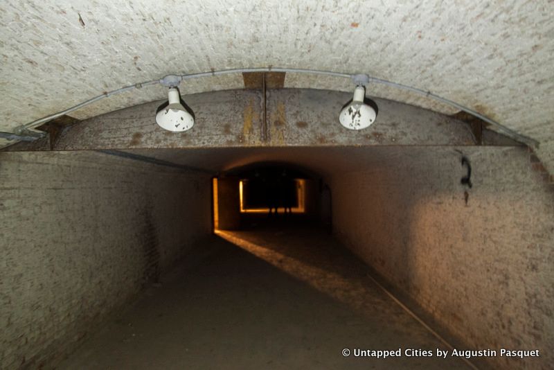 The Park Slope Armory was built with a tunnel that led from the 14th Street side of the building into the middle of Prospect Park. The bricked-up entranceway in the above basement storage room is the former entrance to the tunnel. You can feel a breeze from the removed bricks on top of the entranceway. But it is believed that large portions of the the tunnel collapsed due to the construction of the subway and from residential expansion in Park Slope.