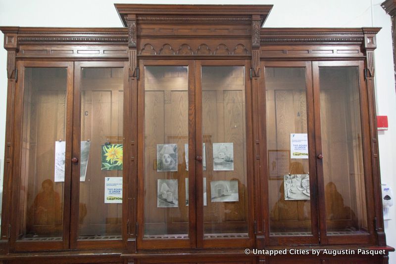 Other parts of the Armory still retain their original heavy wooden doors and glass cases. Though often filled with children’s art, if you look down inside the cases, you’ll still find wooden cutouts for the storage of rifles.