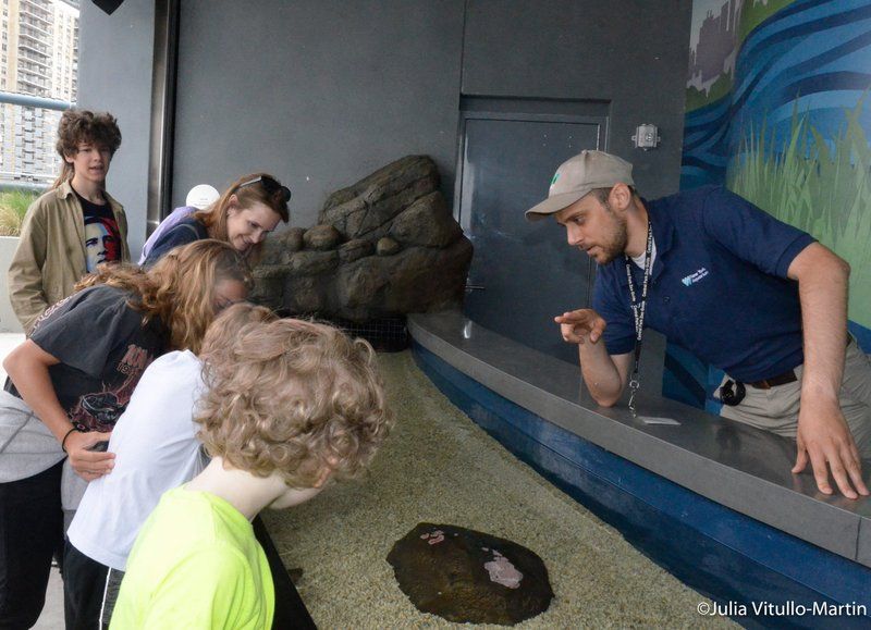 After carefully washing hands visitors can touch small sharks, such as epaulettes and white spotted bamboos.
