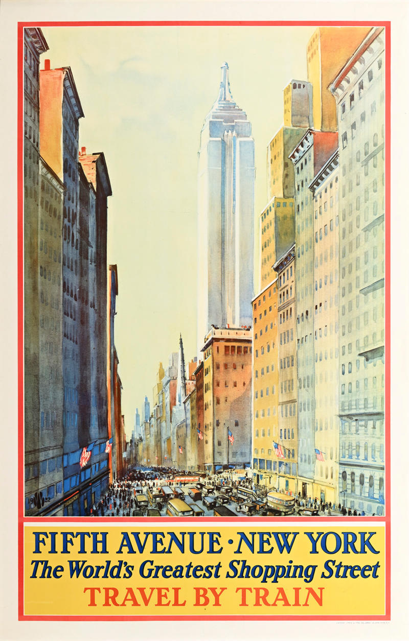 In the final decades of the 19th century, everything about New York City was booming. The city was an important hub for rail and sea travel, both leisure and commercial. The streets were rapidly filling with the tallest buildings the world had ever seen. People from every corner of the globe wanted to call New York home. This explosive growth led to the creation of more travel posters than were designed for any other city in the world.