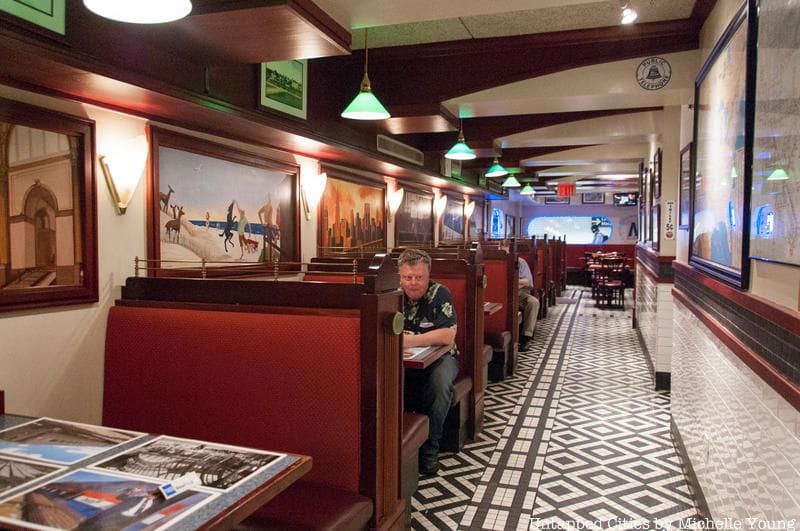 Reaction to the opening on social media has been mixed. While some commenters expressed excitement for the establishment's return, others noted its "sterile" aesthetic and expressed nostalgia for the original location. The new Tracks is predominantly grey and black with tan leather bar stools, a long bar, high-top seating, and some booths. In the gallery below, you can see photos of the original location, which featured tile floors, a dark wood bar and paneling, railroad memorabilia, and train-themed murals.