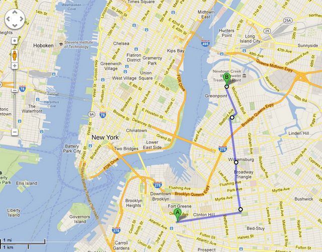 GoogleMaps told me that my journey from the first G-only stop, Fulton St., to the northernmost Brooklyn station, Greenpoint, would be 4.4 miles and take 1 hour and 27 minutes. Since I’ve found that GoogleMaps usually thinks my walking speed is a brisk jog, I planned for a longer trip. [Final time: 2 hours and 37 minutes]