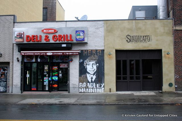 Fulton St StationBible verses on the wall of 69 Lafayette AveGourds talking to each other at 92 Lafayette AveStairwell mural at 126 Lafayette Ave“still moving” at 136 Lafayette AveMasonic temple at Clermont Ave and Lafayette Ave, next door to Queen of All Saints churchWhite rollerblades with flowers (a memorial?) tied to the stoplight at Lafayette Ave and Washington AveMTA workers surfacing the steps at Clinton-Washington Avenues StationBike parking at Pratt Institute’s Higgins Hall, Lafayette Ave and St. James Pl312 Lafayette Ave under constructionNo Parking, with friendly enforcersClimb up to the bench at 444 Lafayette AveOrnamentation at 474 Lafayette AveBedford-Nostrand Avenues stationPoison and dogs at 551-553 Lafayette AveA splash of blue at 577 Lafayette AveChicken coop at 535 Lafayette AveGreenThumb park on Lafayette Ave and Marcy AveStay Cool at the Kosciuszko pool on Marcy Ave and Kosciuszko StKingdom Hall of Jehovah’s Witnesses on 685 Dekalb AveBed-Stuy cats at 650 Marcy Ave“U Like Chinese Food” at Willoughby Ave and Marcy AveMemorial for Mack at 599 Marcy Ave“Flat Fix God Love You” at 580 Marcy AveMyrtle-Willoughby Avenues stationThe grates were my G-train yellow brick road, although they weren’t usually this aestheticPfizer plant at Flushing Ave and Union Ave (Marcy Ave turns into Union)Flushing Ave stationEmpty lot at Union Ave and Wallabout StAcme Power Transmission, which inexplicably uses stuffed animals in its display, at 578 BroadwayBroad & Boerum, a Hasidic building in the former Lincoln Savings BankBroadway stationA modern obelisk? At 190 Union AveMetal copse at 251 Union AveBacked-up gas lines at S. 2nd StMural at Union Ave and Grand StI liked the clover awning at 418 Union AveMetropolitan Ave station and the infamous Kellogg’s DinerThe former location of Our Lady of Mt. Caramel at Jackson St and Union Ave under the BQEArchitectural waves at 610 Union AveUprooted tree from Hurricane Sandy in McCarren ParkBradley Manning mural at 55 Nassau AveNassau Ave station next to Yelena’s Shoe Repair, which I can corroborate is a good shoe placeA surprising wooden door at 671 Manhattan AveGreenpoint Savings Bank, now inhabited by ChaseA new CVS going in at Manhattan Ave and Milton StGreenpoint station