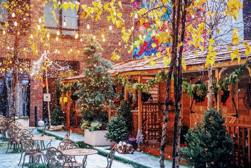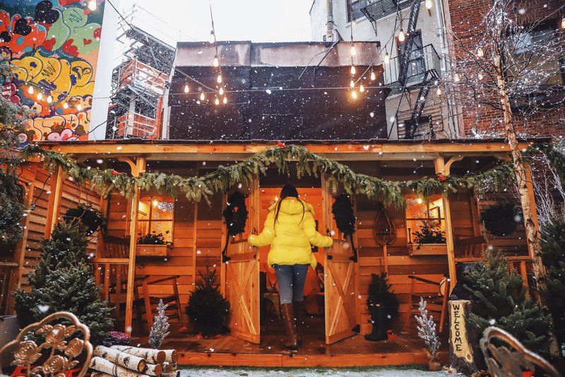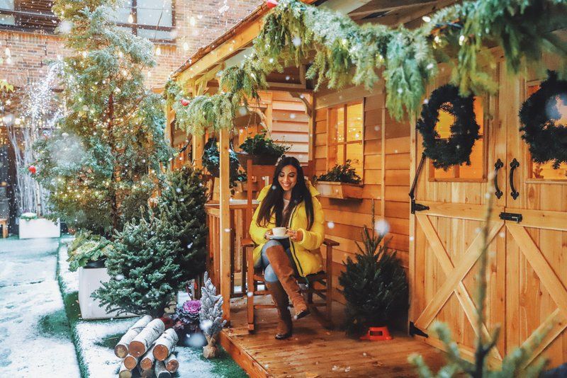 The nightly snowfall from 6 to 7 pm takes this experience to another level that most other chalet-themed spots in the city can’t compete with. It feels like a dream to sit inside the cabins as the flakes fall outside, or to watch from the courtyard as they descend upon the wooden rooftops. The cabin porches offer perhaps the best photo taking spot, as you pose on a rocking chair amongst snow shoes, wreaths and garlands. Simply sitting at one of the courtyard bistro tables on a warmer day with a coffee and a book or laptop even offers a peaceful atmosphere in which to work or relax.