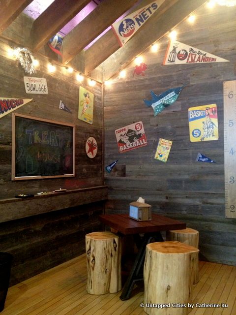Snap, Crackle, and Pop would feel right at home at Treat House, a store that sells almost exclusively Rice Krispie Treats-related desserts. A fun addition to the Upper West Side food offerings, the store on Amsterdam and 82nd Street also sells rice krispie breakfast bars, pops, marshmallows, and ice cream bars. If the food itself wasn’t enough to necessitate a trip to Treat House, its interior is. The back of the store is designed to look like a camp cabin complete with wood paneling, art work designed by Daniel and Eli, tree trunks and a swinging bench to sit on, and other nostalgic decorations, which the Russell children helped pick out.