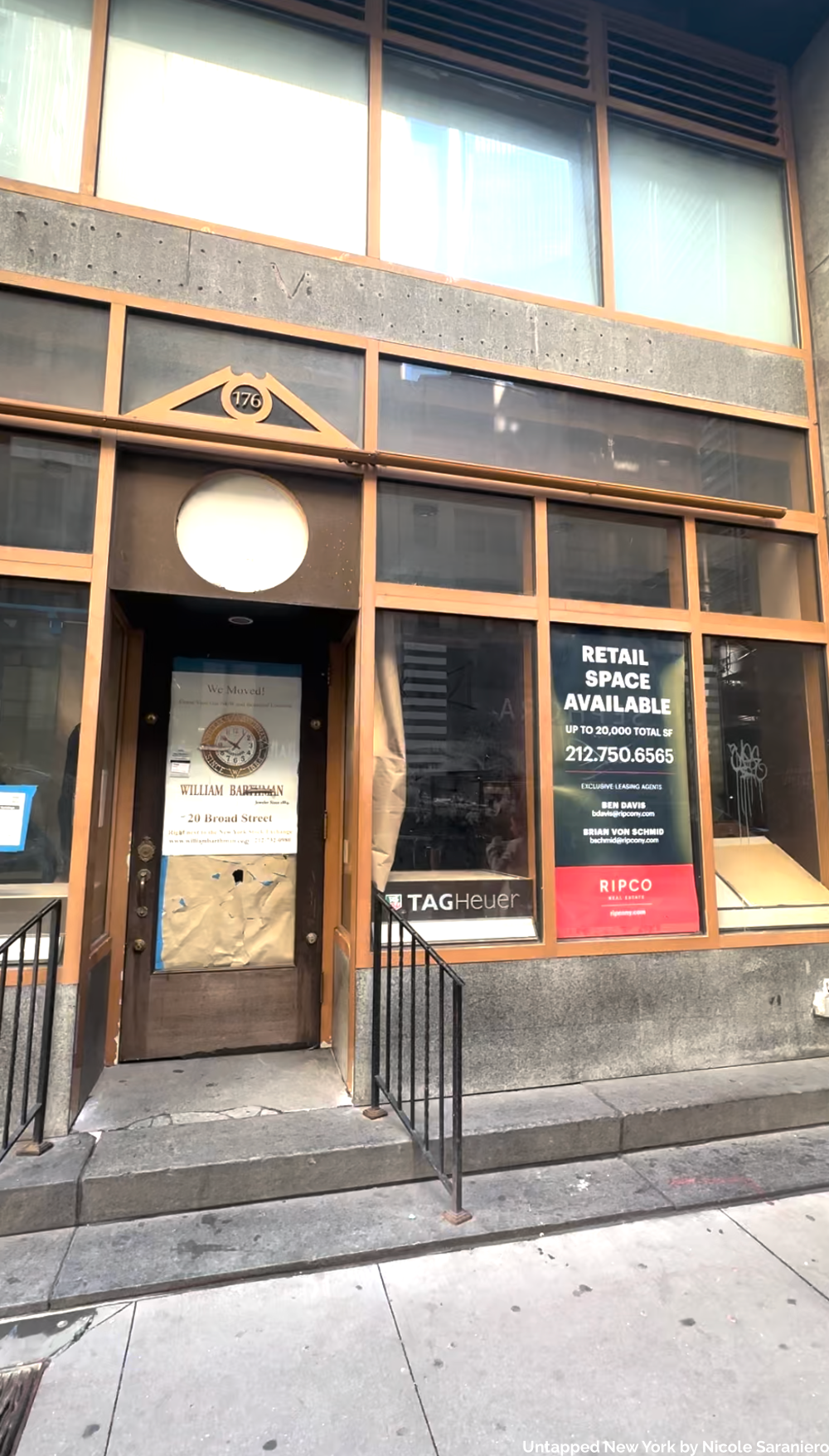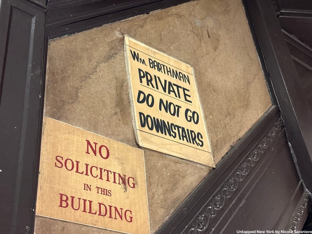 On a cool September morning, we met Brianna and Kirk from the William Barthman marketing team at the clock on the corner of Maiden Lane and Broadway. As Brianna pointed out vestiges of the old storefront, including a crack in the facade from 9/11 and a Barthman ghost sign, Kirk retrieved the keys to the basement from a current tenant of the building.