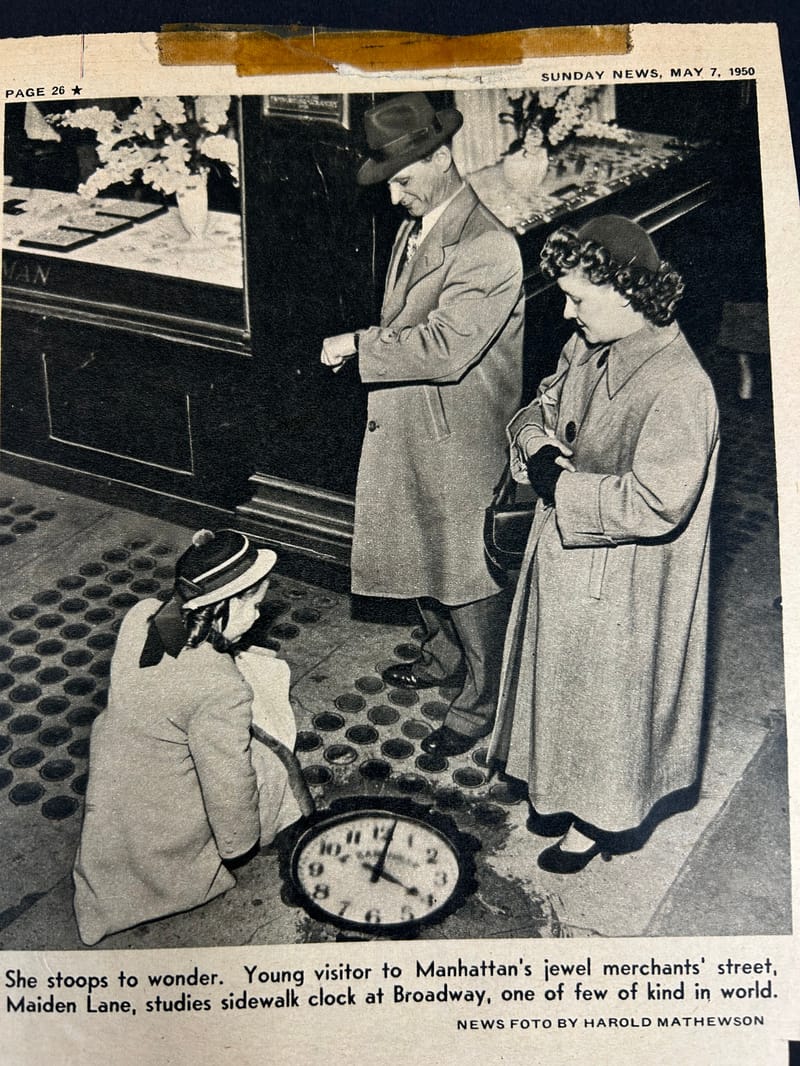 Thanks to Guilo and generations of caretakers before him, the Barthman clock still ticks on — precise and adjusted for daylight savings! Next time you find yourself at the corner of Maiden Lane and Broadway, look down and check the time rather than looking at your phone.