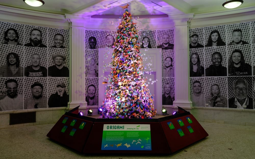 In the 1970s, Museum entomologist Alice Gray began creating paper models of insects based on the Museum’s collections. Those models made their way onto a small holiday tree in one of the scientific offices, and a new tradition was born. You can spot iconic museum attractions like the Blue Whale, Tyrannosaurus rex, and Titanosaur hanging on the tree.
