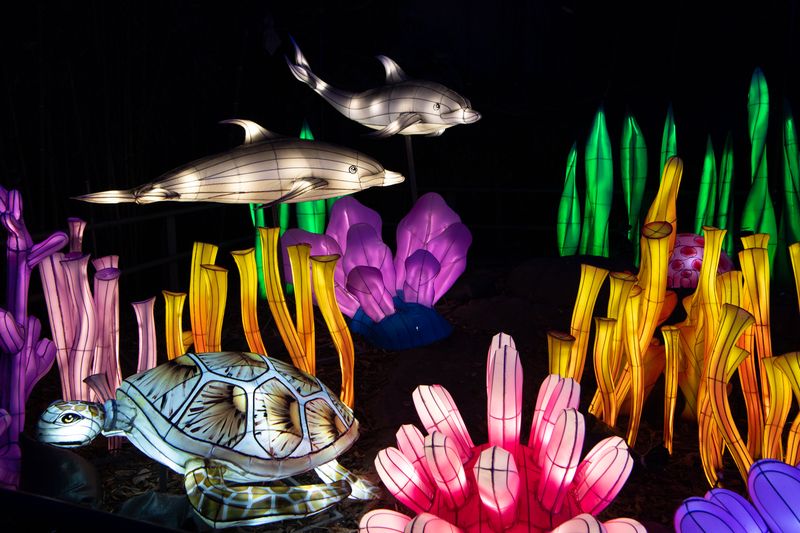 The holiday lights at the Bronx Zoo are wild! Instead of holiday figures like Frosty, Santa, and Rudolph, at the Bronx Zoo holiday lantern festival you’ll find glowing depictions of elephants, turtles, gorillas, and other wildlife. As you embark on a lantern safari, you’ll see nearly 400 lanterns representing almost 90 animal and plant species. Of those total numbers, 64 new lanterns representing 9 new animal species have been added for 2023. The wildlife displays are separated into geographical categories of Africa, Asia, Latin America, North America, and the ocean.