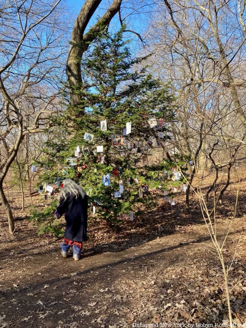 We first heard whispers of a secret pet memorial tree back in 2013 and set out to find it in Central Park. The makeshift memorial is hidden deep in the woods of the Ramble south of Belvedere Castle. The little-known tradition has kept up quietly over the past decade. On the tree, you’ll find mostly handmade ornaments, all dedicated to lost furry loved ones. There are laminated photos of pooches and notes to lost felines and other pets among ribbons and bows. While this part of the park is usually quiet, especially during the winter, you might run into another person or two taking a moment to reflect on fond memories of their long-lost companion.