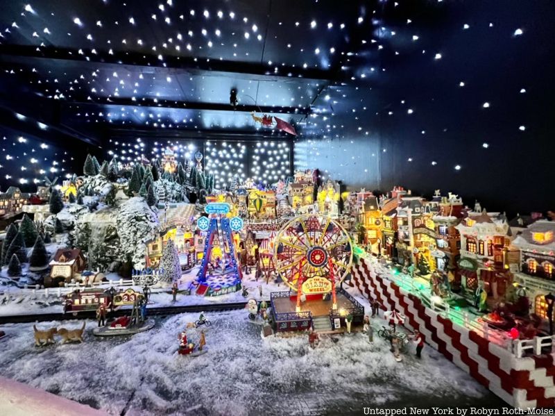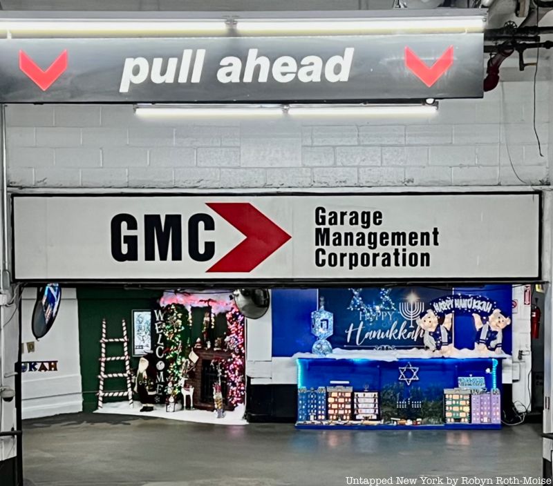 Down in the garage, you’ll see a fireplace scene complete with Santa and presents, a New York City street scene with dreidels and a menorah, and a massive winter village that garage employee Javier Sanchez told NBC News contains figures of himself and other employees as well as their family members. You can (carefully!) walk in and enjoy the displays on foot, or by car if you need a spot to park!
