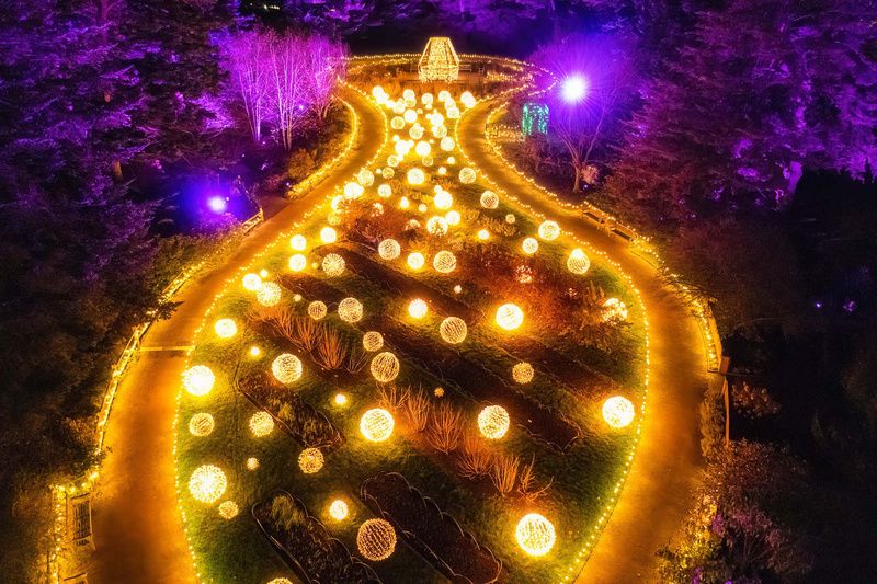 The twinkling topiaries, a glittering gazebo walk, and spherical white pollen puffs will illuminate the grounds of the New York Botanical Garden this week with NYBG GLOW, New York City’s largest outdoor holiday light display. This light experience accompanies the garden’s beloved Holiday Train Show, which also returned this year for its 31st iteration.