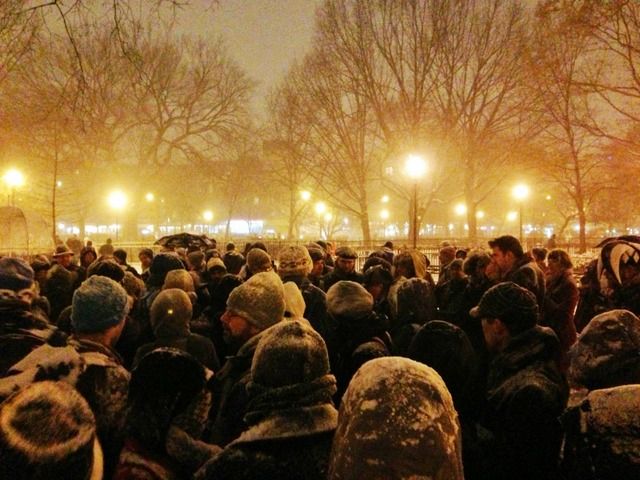 Crowd assembles in Washington Square Park. Photo courtesy Unsilent Night PR