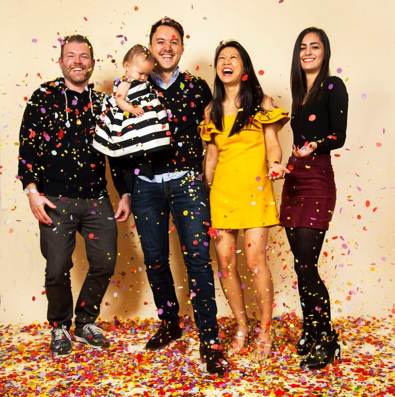 Photo of Untapped Cities Team by The Confetti Project. From left to right, Justin Rivers, Augustin Pasquet, Charlotte Pasquet (age 20 months) who has attended many openings, including the reopening of the Cortland Street Subway station, Michelle Young, and Nicole Saraniero