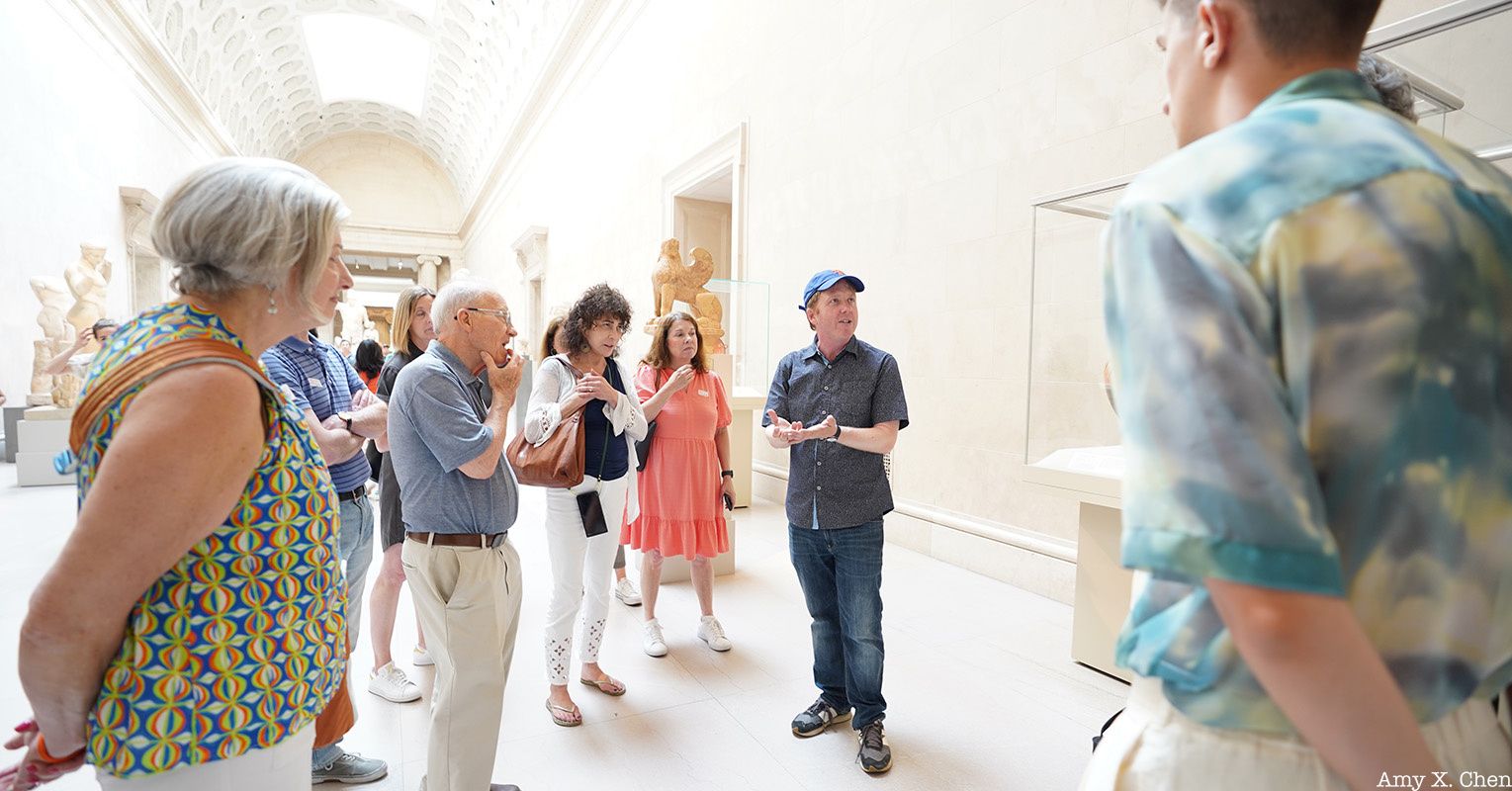 Patrick Bringley, your guide for this tour, worked as a museum guard in the Met for a decade. As you follow him through the galleries of priceless artifacts, you’ll hear stories of the museum’s hidden nooks and vast backstage spaces. Locate hidden traces of the Met’s 150-year history as you peer into the eyes of a once-stolen Greek statue, find the tooth of Mary Magdalen in a Renaissance reliquary, and see the Met’s familiar masterpieces in a fascinating new light.