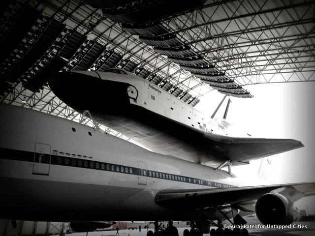 Untapped Cities writer Suraj Patel shares with us his experience of hanging out with the Space Shuttle Enterprise at JFK Hangar 17, before it gets transported to its final home at the Intrepid. How did he get there? On official government business, so don’t try this yourself.