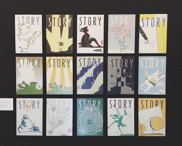 In a plaque next to the collection of STORY covers, he describes how he offered to do an original cover for the same amount the magazine requested for a reprint. He states “This was one of the best professional decisions I ever made (in a career pockmarked by too many awful decision–but don’t ask). It allowed me to do some of the best work of my career. Sometimes it pays to look at the job and forget the wallet.”